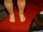 Poupée Petitcollin aux membres maintenus par élastique et tête emboîtée, elle date de la fin des. Années 70 début 80, elle est parfaitement fraîche, entre les omoplates on perçoit à peine le " Made in France" en ovale à cet endroit le corps n'a aucune trace de frottement, c'était donc le moule en fonte du corps qui commençait à être usé par le temps, poupée vêtir grâce aux patrons Modes et Travaux de la fin des années 70 (petit trou dans laa tête comme mentionné dans le livre des poupées M&T page 174)