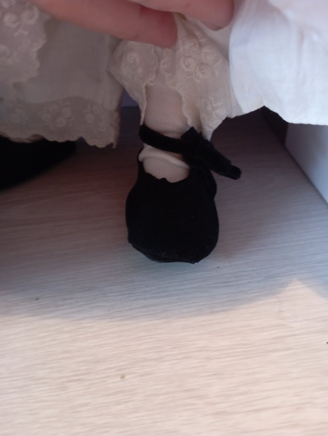 Tenue complète : robe, bonnet, panty, jupon, chaussettes